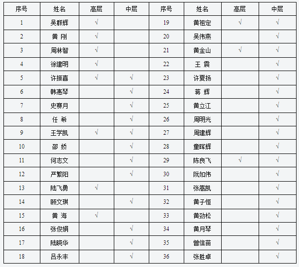 2017-12-31根據(ju)《浙(zhe)江良和交通建設有限(xian)公司領導干部(bu)競(jing)(jing)聘(pin)上(shang)(shang)崗(gang)實施(shi)方案(an)》,公司本次競(jing)(jing)聘(pin)設中層副職(zhi)及以上(shang)(shang)崗(gang)位(wei)26個(其中2個為(wei)述職(zhi)崗(gang)位(wei)),共計37人(ren)報名(ming)。經前期報名(ming)公示及競(jing)(jing)聘(pin)領導小組資(zi)格(ge)審查, 36人(ren)符合(he)競(jing)(jing)聘(pin)條件,現予以公示(名(ming)單按現所在部(bu)室/單位(wei)順序排(pai)列):